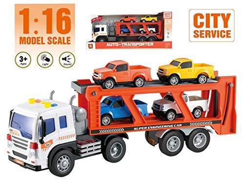 Jumbo tractor trailer car transporting truck featuring a build in carrying case with 26 slots.